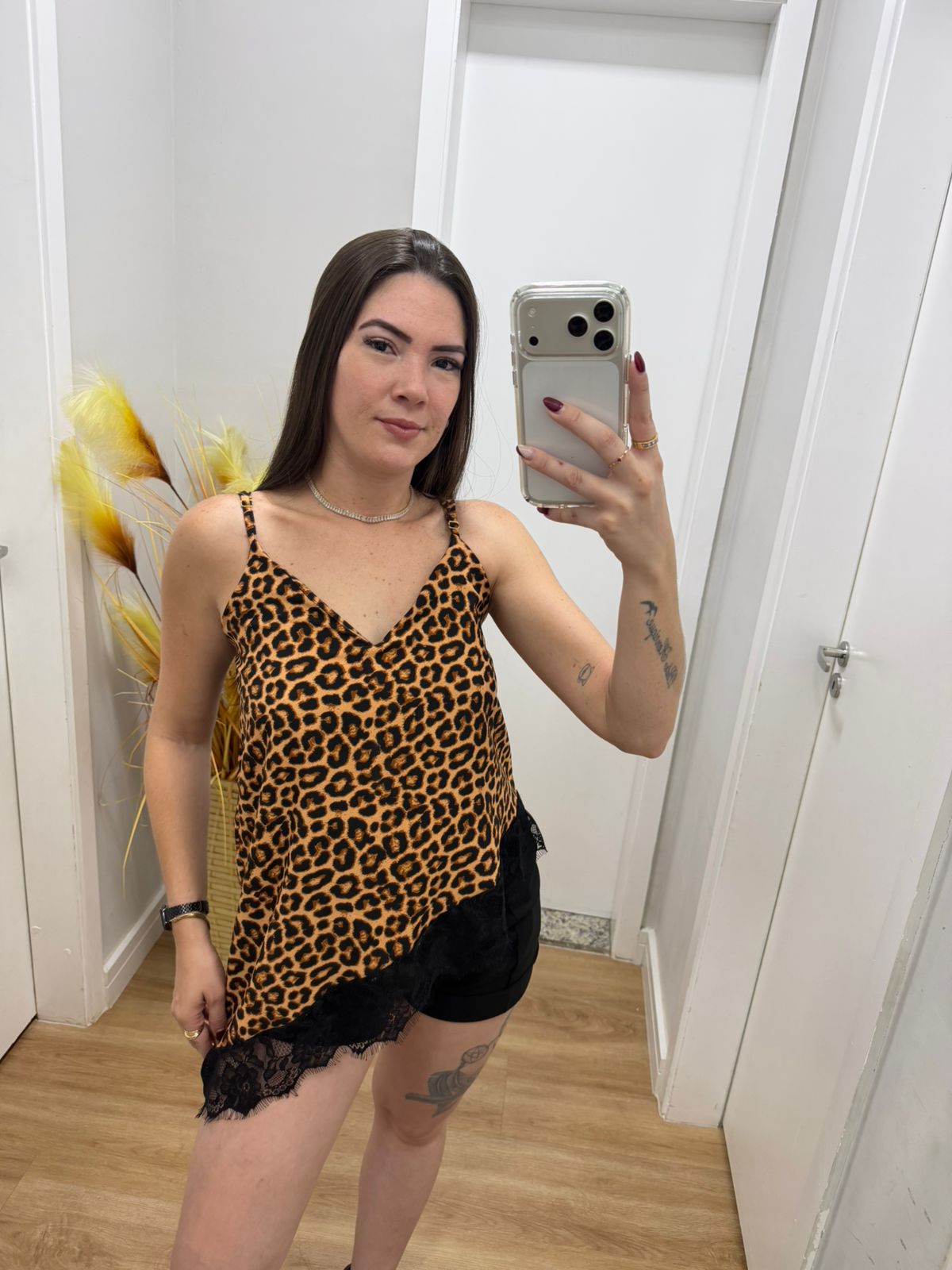 Blusa Assimétrica renda Onça