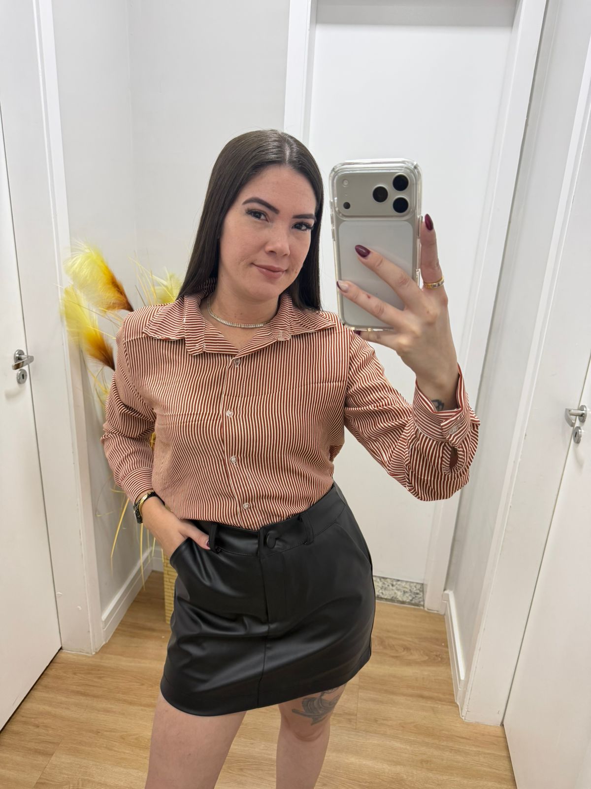 Camisa Social Listra fina Terra Cota