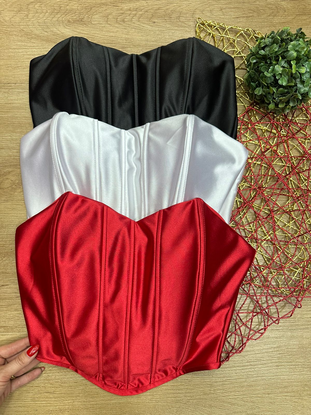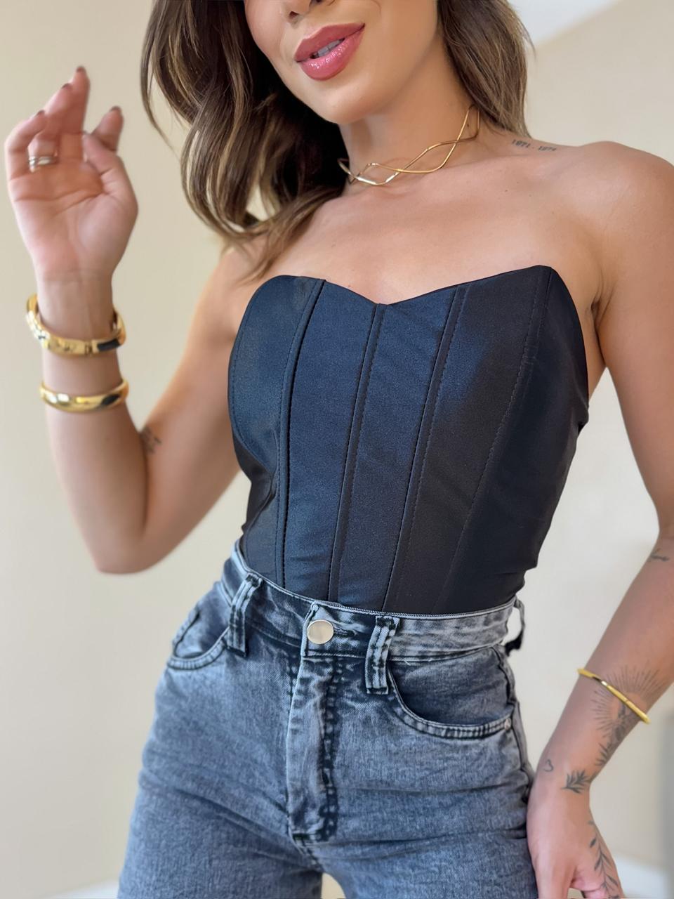 Cropped Corselet Acetinado Tomara que caia