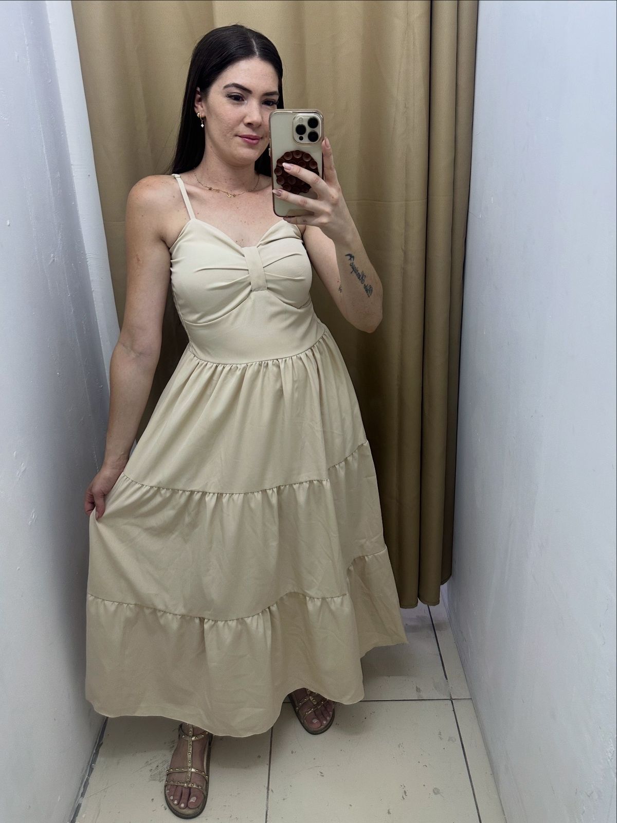 Vestido Midi Liso Bege